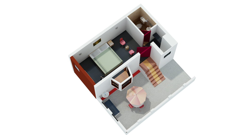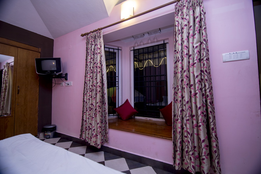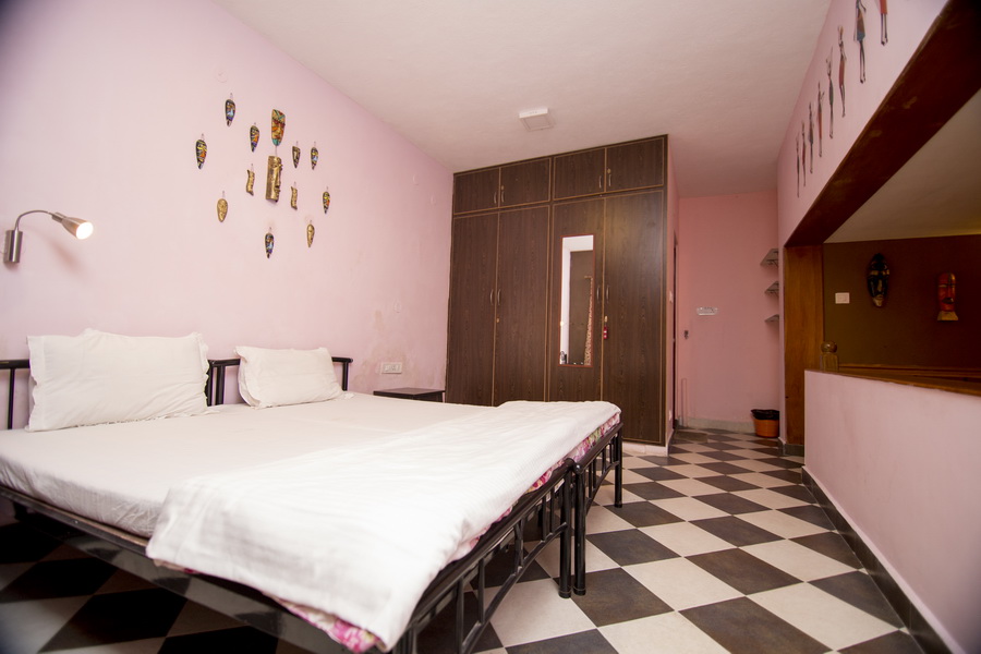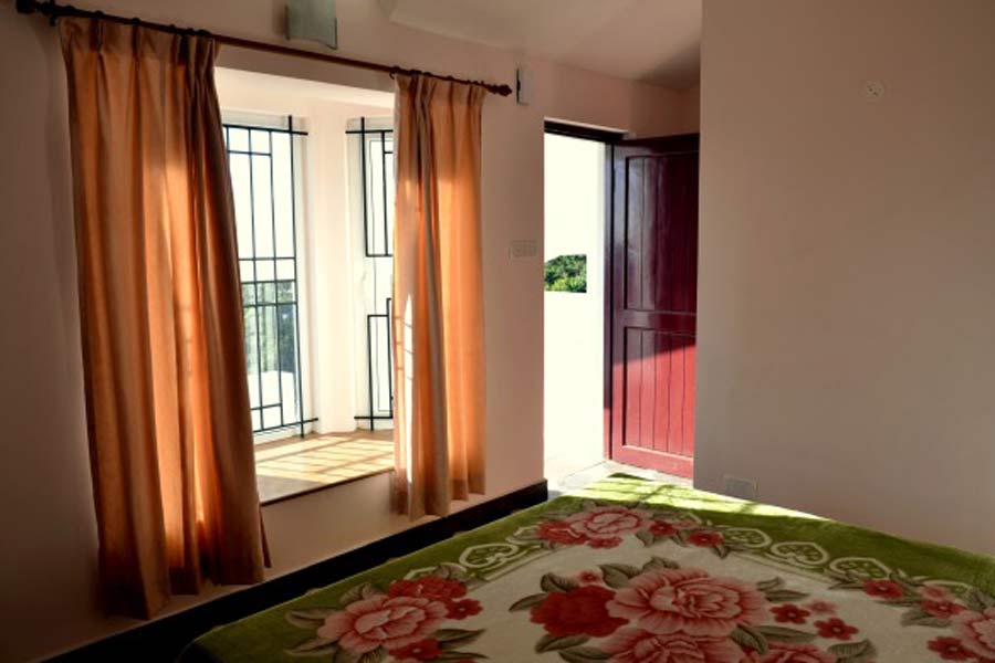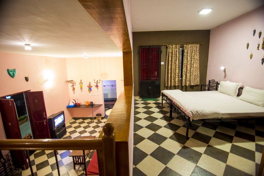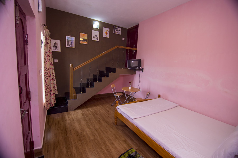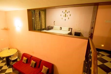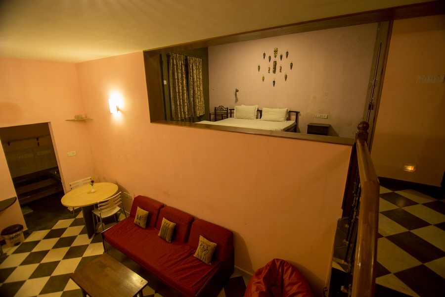 This is the smallest of our four rooms. An internal staircase running through the room makes it look smaller than it actually is. It is an interconnecting room with the Garden view room above which is Spacious consists of a bedroom. The far side of the room opens to an exclusive small lawn. The Room in the mezzanine floor and the ground floor has independent entry but can be connected through a common door if required.