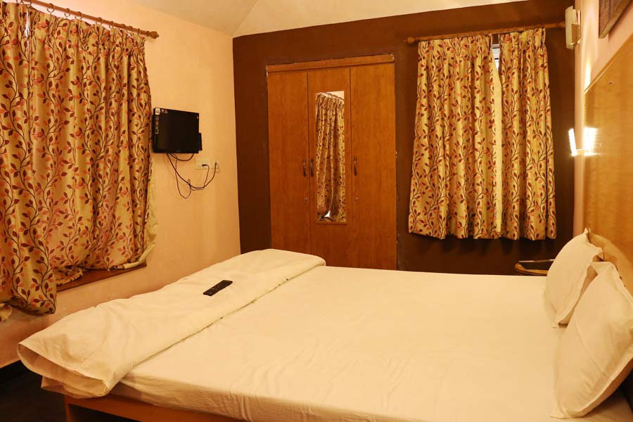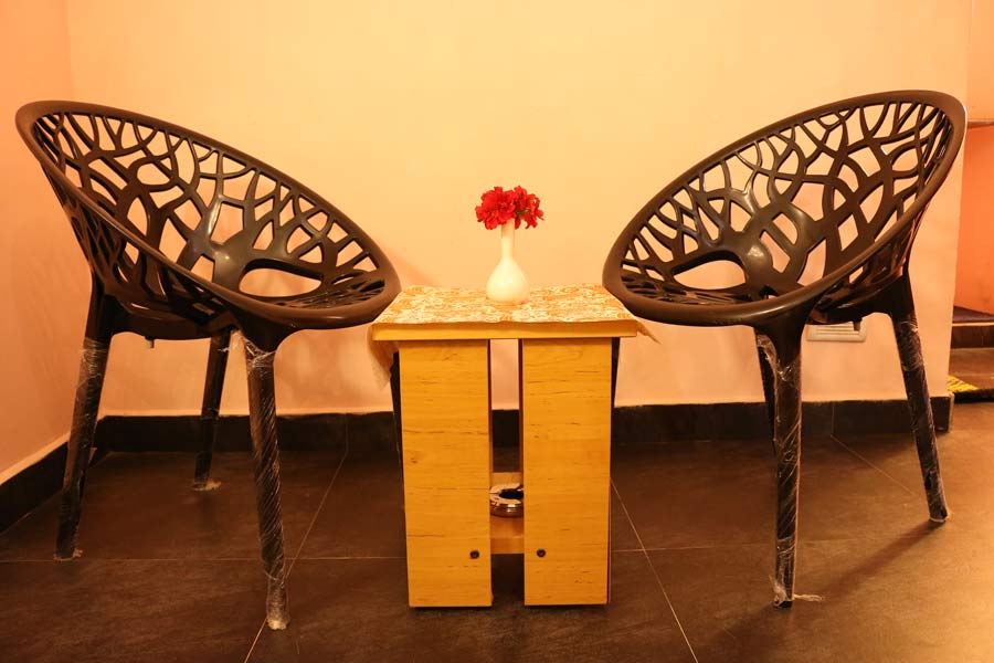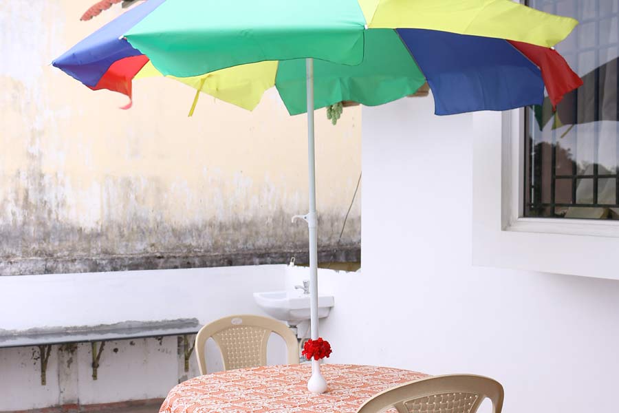 The Terrace Room consists of a bedroom and hygienic en-suite bathroom, clean linen, Cable TV, DVD players on request, a tea table, Tile Flooring, BAY WINDOW. Terrace Rooms offering you panoramic view of Valley right from room. The big terrace is for the exclusive use of those in the Terrace rooms which doubles up as a place for dining and relaxing under the umbrella.