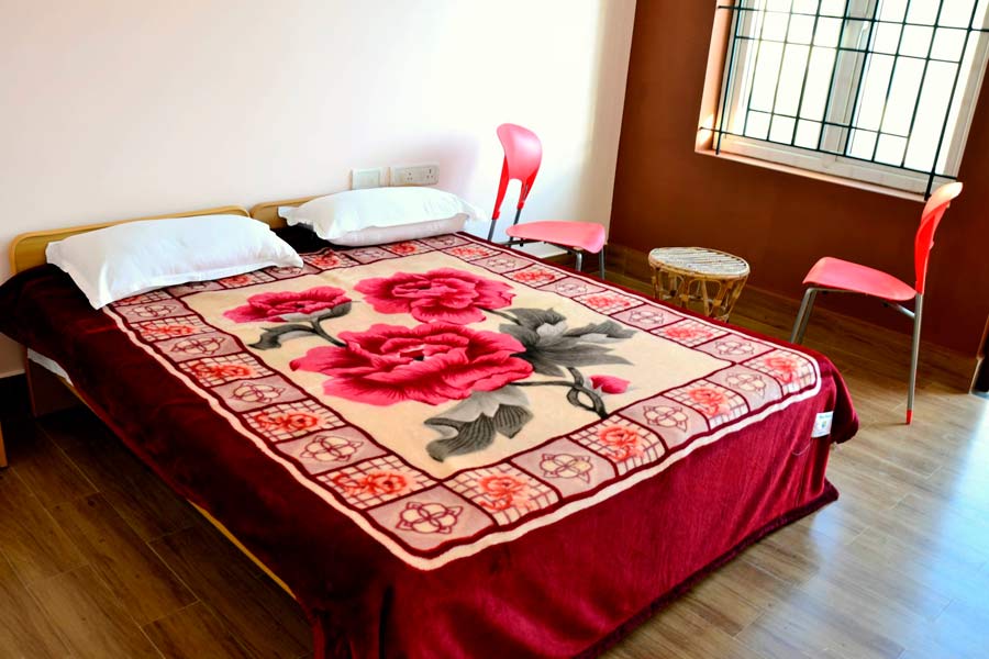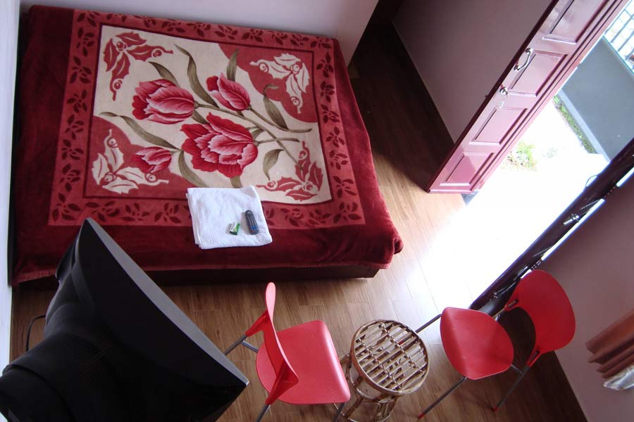 Room, is the biggest of the four rooms we have, consists of a bedroom and hygienic en-suite bathroom, clean linen, Cable TV, DVD players on request, a tea table, Tile Flooring. Terrace Rooms offering you panoramic view of Valley right from room. The big terrace is for the exclusive use of those in the Terrace rooms which doubles up as a place for dining and relaxing under the umbrella.